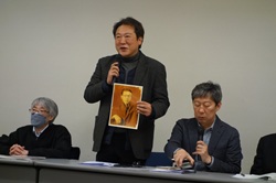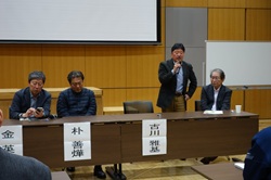 私からはこの映画を作ったきっかけは2002年の「GUNGUN原告証言を映像に残すツアー」にあったことを紹介した。共同監督の加藤久美子さんや、当時韓国に留学していた丁智恵さんがボランティア参加していたツアーの最後に李熙子(イ・ヒジャ)さんが連れて行ってくれたのが、天安・望郷の丘にあるヒジャさんのお父さんの「名前のないお墓」だった。 どうすれば日本の若い人の心にヒジャさんたちの悲しみ、怒り、憤りを届けることができるか考えて制作したことを話しした。 全編通して見たのは10年ぶりくらいだったが、新鮮に見れたのは私だけではなかったようだ。上映後多くの人が「今に通じる」と感想を伝えてくれた。今の情勢に通じるのは残念ではあるが、この映画を見ていただくことで「気づき」や「行動」につながれば、作った側にとって本望だ。 |